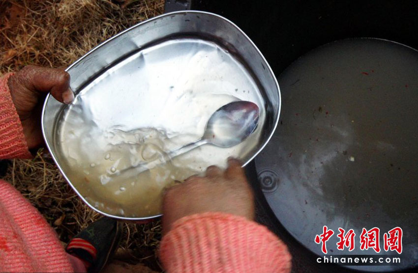 孩子们洗饭盒就用这么多水。沙浪 摄