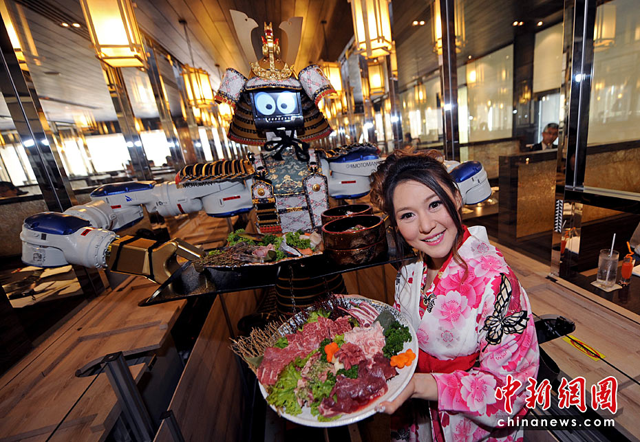 这家日本餐馆是泰国首家拥有机器人服务员的餐馆,顾客可以通过电子触摸屏进行点菜,机器人则会带来相应的服务。机器人服务员能有节奏地跳舞,还可以自动到餐桌为客人收走空盘子。