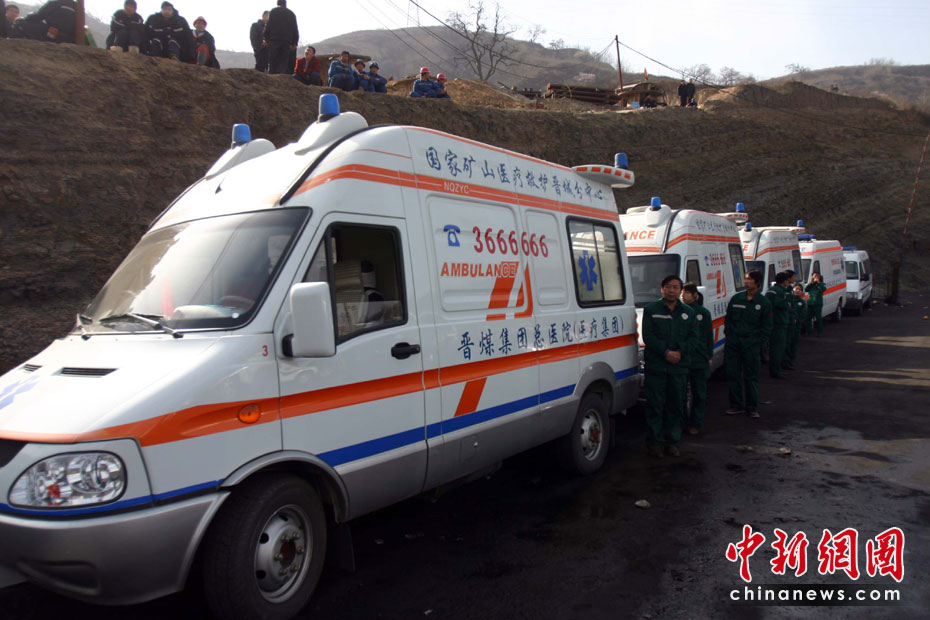 4月3日上午,华晋焦煤公司王家岭矿透水事故第七天,在得到井下有强烈生命反应的抢险人员士气上得到了极大鼓舞,正在继续加大力度排水,现已排水已达到每小时1935立方米,水位线下降5.3米,紧急救护车已到现场24小时待命,随时准备急救从井下获救的矿工。中新社发 张云 摄