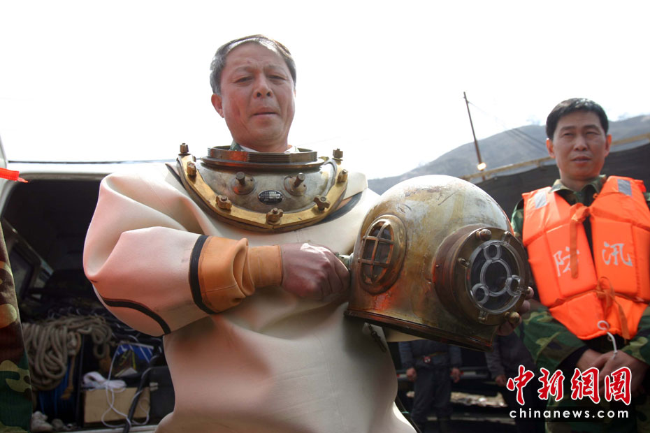4月3日,华晋焦煤公司王家岭矿透水事故第七天。中午11时20分许,冲锋舟、蛙人抵达现场,他们将尽快下井展开抢险工作,其中蛙人主要工作为摸清井下具体环境,以及为井下矿工输送营养液,为井下矿工带去生存的希望。图为整装待发的蛙人。中新社发 张云 摄