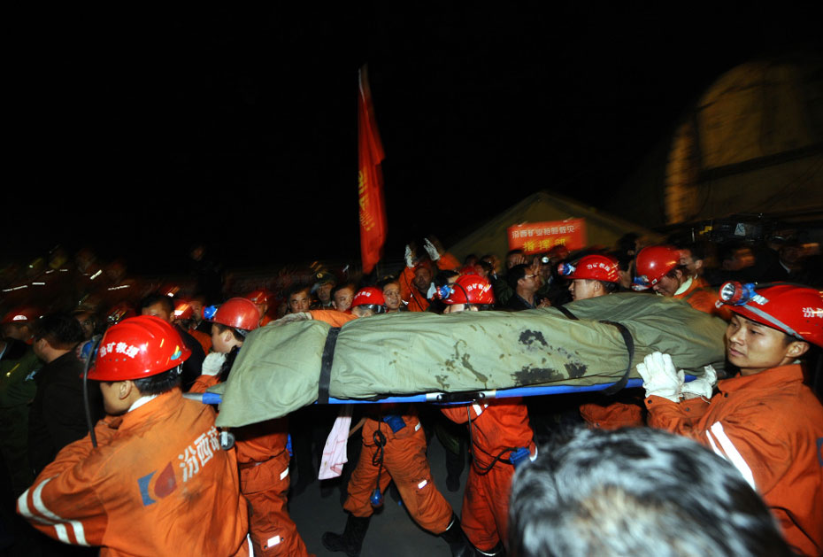 3月28日下午,华晋焦煤有限责任公司王家岭煤矿发生透水事故,153人被困井下。4月5日凌晨随着首名被困人员成功升井,经过了190个小时的紧张营救创造了生命奇迹。图片来源:中国新闻网
