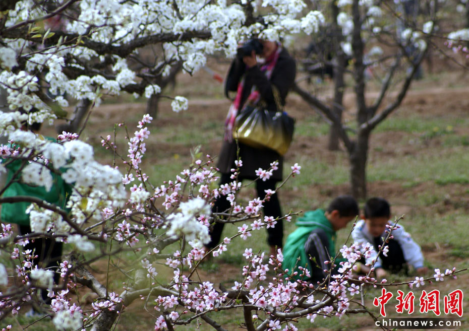 5日,清明节,河南省济源市许多市民到郊外踏青赏花。中新社发 平白 摄