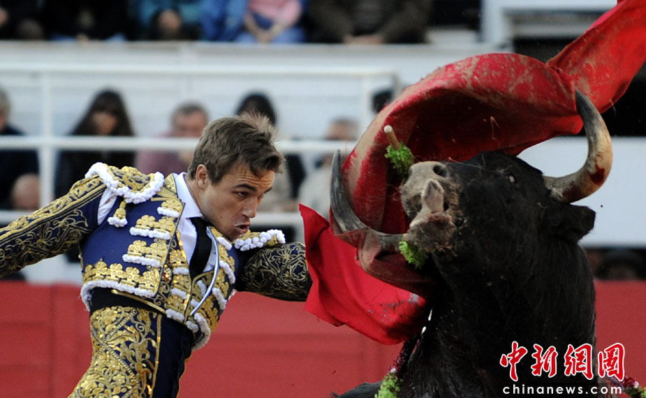 当地时间4月5日,法国南部上演了一场精彩的斗牛大赛,庆祝复活节的到来。图片来源:中国新闻网