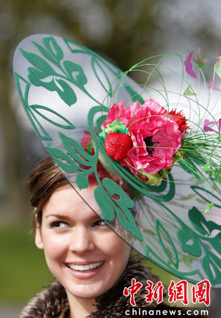 4月9日,英国安特里,女士们盛装出席安特里赛马场女士日活动。