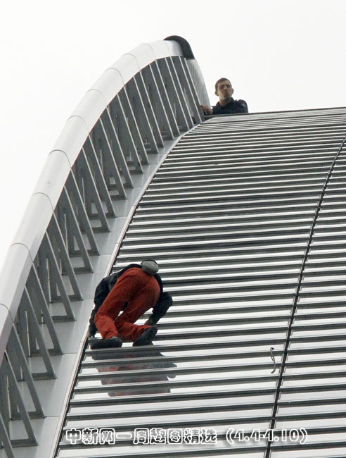 4月7日,巴黎,法国“蜘蛛人”罗伯特当日用了大约50分钟成功攀爬185米高的法国燃气苏伊士集团大楼。图片来源:中国新闻网>>点击观看详细内容