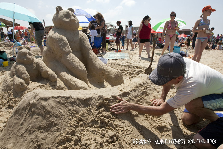 4月5日,以色列国家公园和自然保护区管理局在北城镇Beit Yanai举行了一年一度的沙雕大赛。图片来源:中国新闻网>>点击观看详细内容