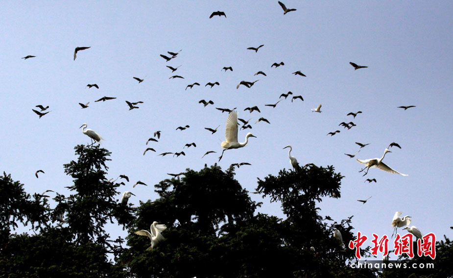 4月9日,一对白鹭在象山森林公园欢跃飞舞,谱写一曲春日恋歌。四月,正值芳草萋萋,万物生机勃勃。万余只白鹭陆续抵达江西南昌象山森林公园栖息,繁衍后代,成为鄱阳湖湿地的一大独特景观, 吸引众多摄影爱好者前来拍摄和观赏。孙永胜 胡国林 摄