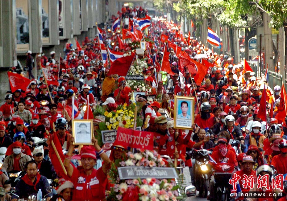泰国红衫军抬棺材游行