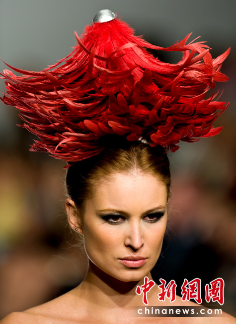当地时间4月12日,在墨西哥首都墨西哥城举行的奔驰时装周,靓模们各种怪异妆扮在T台上上演了一场让人眩目的造型秀。