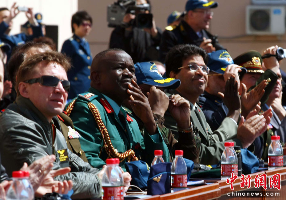 4月13日,47国驻华武官参观了空军航空兵某师新换装的歼十战机飞行表演,并登上驾驶舱与飞行员零距离接触。图片来源:中国新闻网