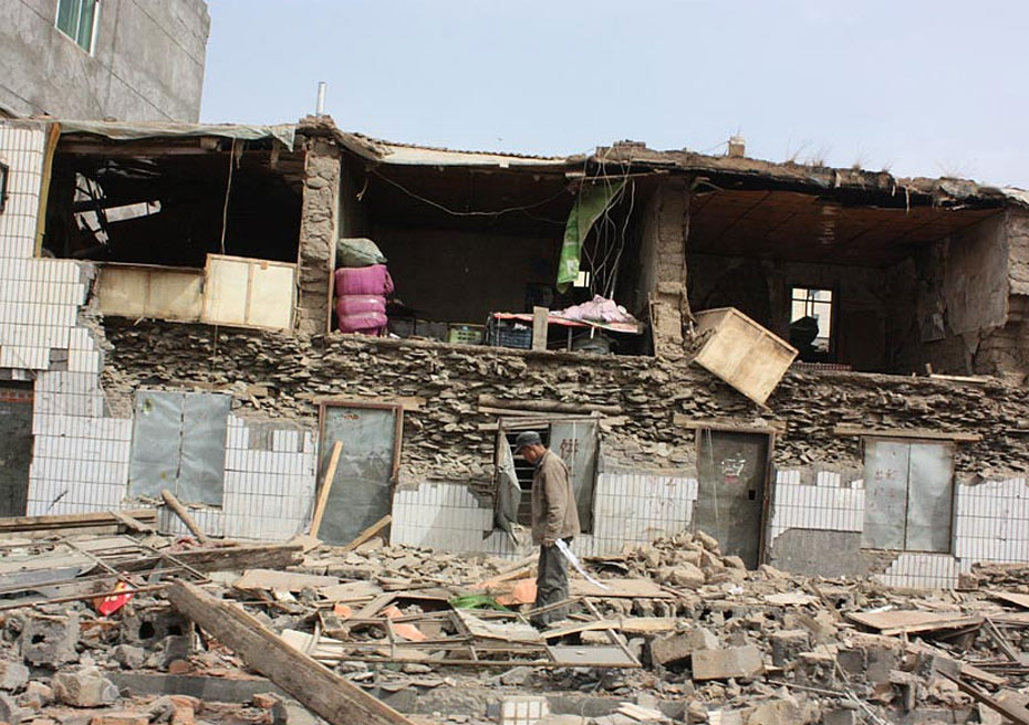 图为4月14日拍摄的玉树州结古镇倒塌的房屋。图片来源:新华网 吴宏 摄