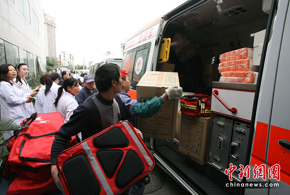 图为4月14日下午,由四川省医院、华西医院23人组成的医疗救援队紧急赶赴青海省玉树县地震灾区参与医疗救援。中新社发 刘忠俊 摄