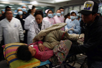 首批地震伤员抵达成都