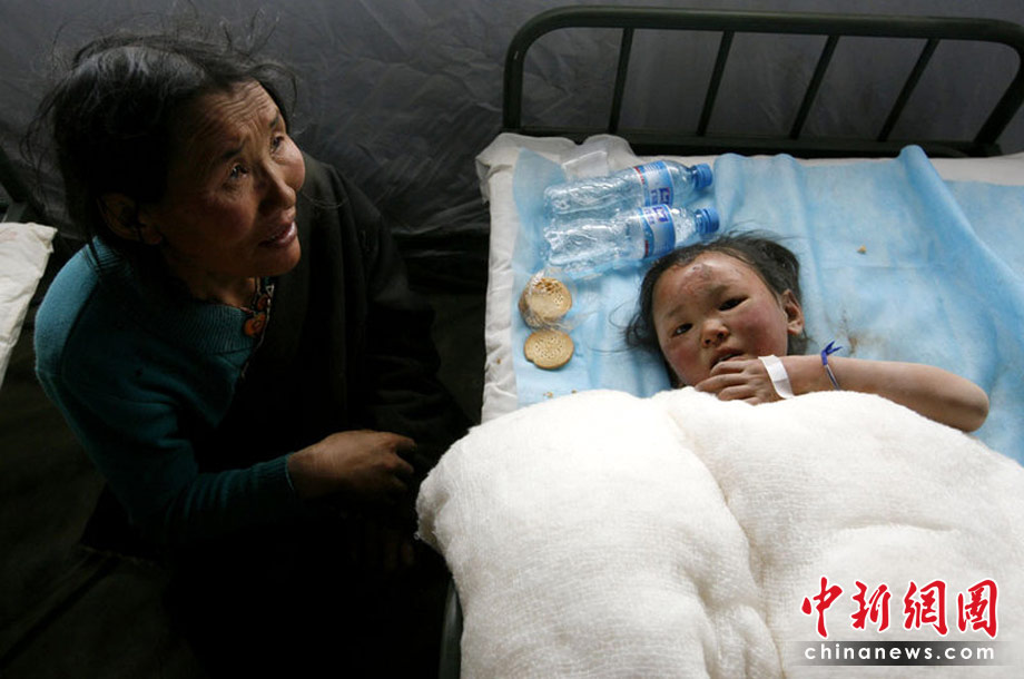 图为2010年4月15日,青海玉树,7岁女孩卓玛在废墟中埋了30多个小时生还。青友 摄
