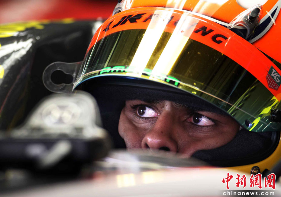 4月16日,2010国际汽联F1世界锦标赛上海站在上海国际赛车场开始车手第一、第二次练习赛。图为代表印度车队出战的印度车手查铎。中新社记者 任晨鸣 摄