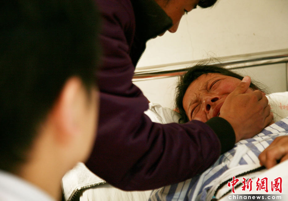 4月16日,四川省人民医院神经内科医生开始对首个玉树地震伤员进行心理干预,这名伤员叫嘎吉,于当日凌晨随机抵达成都,她的四个孩子有三个在地震中不幸遇难,一个重伤,丈夫也不幸遇难,目前,她已有三个多月身孕,情绪非常不稳定。中新社发 张浪 摄