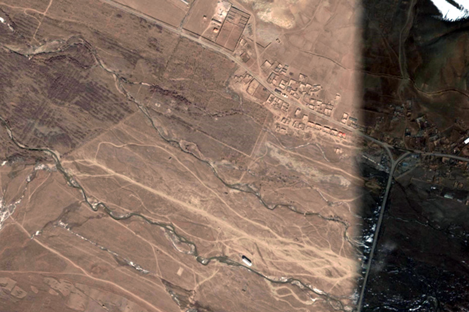 利用对地观测中心2010年4月16日获取的高分辨率航空遥感数据,提取出玉树州结古镇城区范围内地震破坏最严重或典型地区,使之与GoogleEarth中相应位置的震前遥感卫星数据进行对比,直观展现结古镇在此次地震中的受影响程度。图片来源:中国科学院