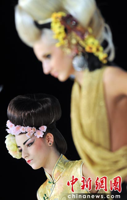 近日,第九届“水晶天使”国际发型艺术节开幕,设计师纷纷秀出自己设计的新款发型。图片来源:中国新闻网