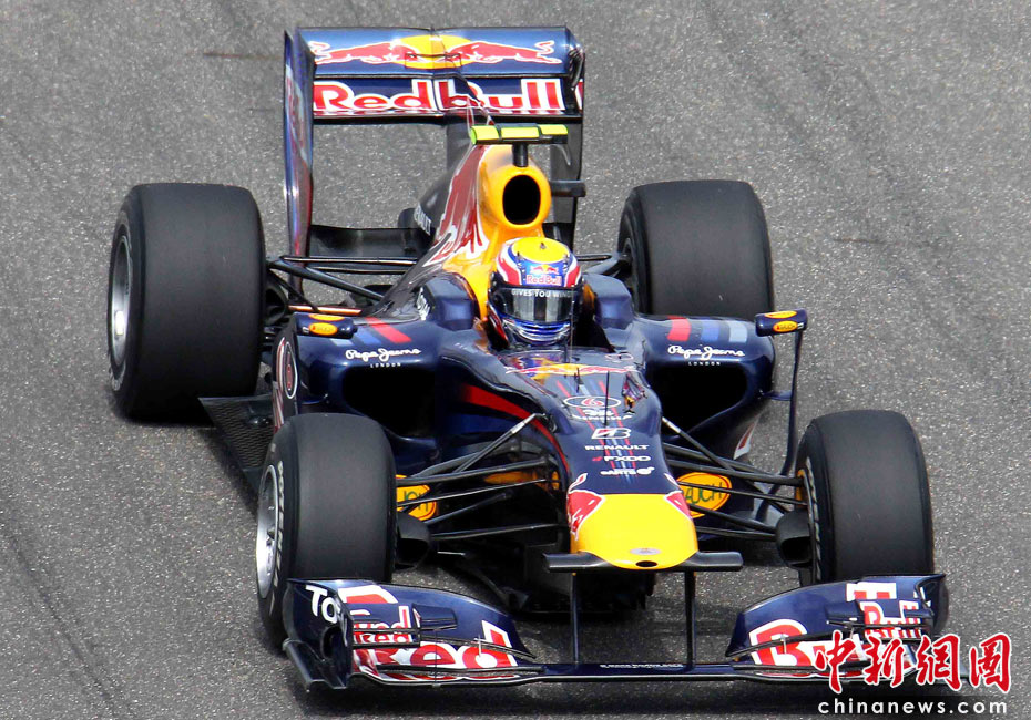 4月17日下午,2010国际汽联F1世界锦标赛上海站在上海国际赛车场举行排位赛,代表红牛车队出战的德国车手维特尔(右)获得杆位,队友、澳大利亚车手韦伯获得第二名,法拉利车队的西班牙车手阿隆索获得第三名。中新社记者 任晨鸣 摄
