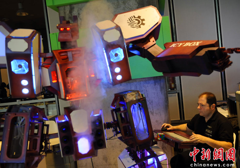 近日,全球最大的网络电子娱乐狂欢节在西班牙马德里开幕,来自欧洲各地约800位爱好者参加了活动,通过活动爱好者聚集在一起交流改造电脑的经验和技术。图片来源:中国新闻网