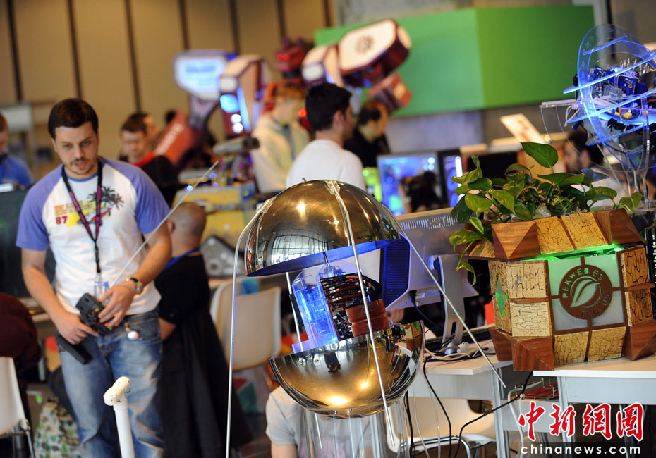 来自欧洲各地约800位爱好者参加了活动,通过活动爱好者聚集在一起交流改造电脑的经验和技术。图片来源:中国新闻网