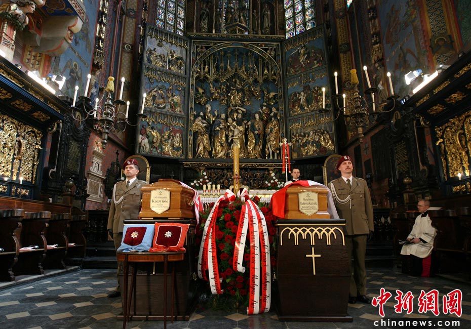 当地时间4月18日,卡钦斯基夫妇的葬礼在波兰南部城市克拉科夫举行。其后,夫妇二人的遗体将被运往当地有着上千年历史的瓦维尔宫安葬。图片来源:中国新闻网