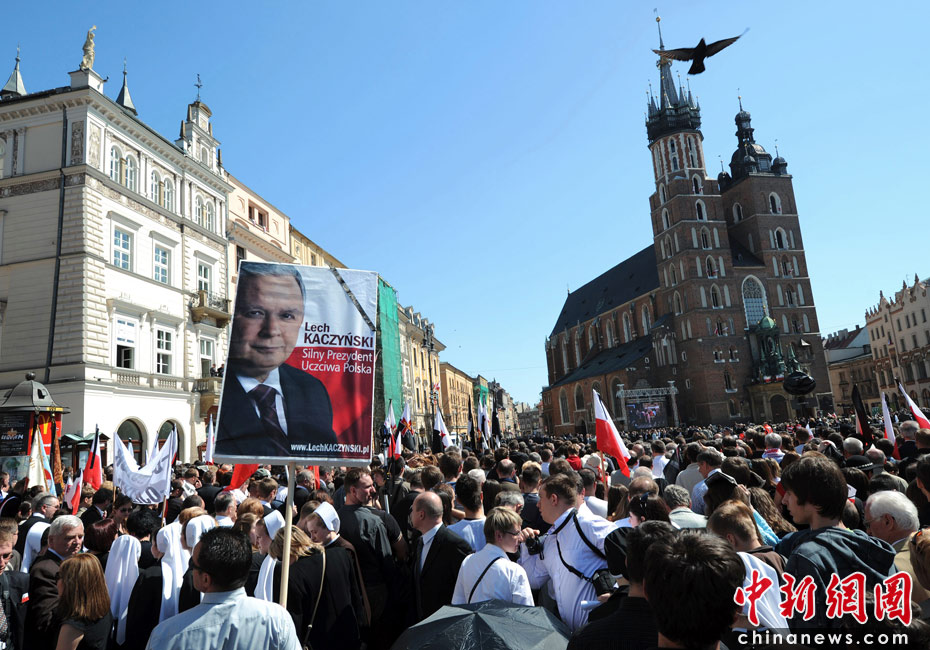 当地时间4月18日,卡钦斯基夫妇的葬礼在波兰南部城市克拉科夫举行。波兰总统卡钦斯基及其夫人乘坐的专机10日在俄罗斯斯摩棱斯克失事,机上人员全部遇难。图片来源:中国新闻网