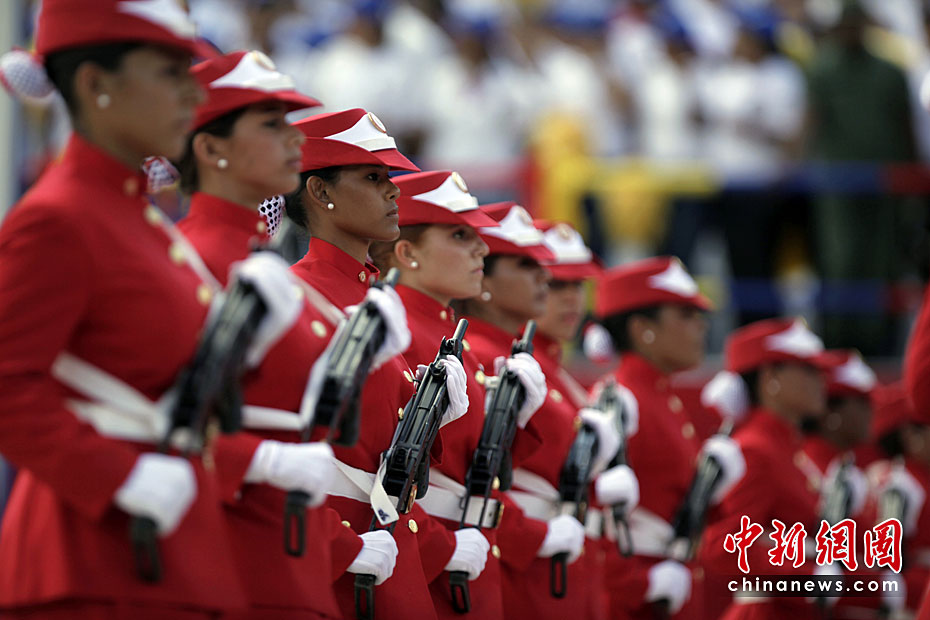 委内瑞拉首都加拉加斯19日举行盛大游行活动,纪念反殖民统治争取独立的斗争开始200周年。图片来源:中国新闻网