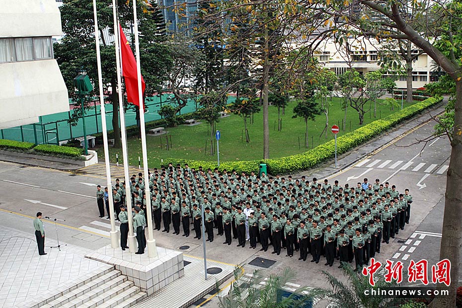 4月21日7时49分,驻港部队各营区下半旗,沉痛哀悼青海玉树地震灾区遇难同胞。驻军张仕波司令员、刘良凯政治委员及陆、海、空军官兵怀着悲痛的心情参加了哀悼活动。全体官兵脱帽默哀三分钟,以表达对遇难同胞的沉痛哀思。2010年4月14日7时49分,青海省玉树藏族自治州玉树县发生7.1级地震。人民群众生命财产遭受重大损失,教育、卫生、电力、通讯、公路、水利等基础设施损毁的严重灾情,深深牵动着驻军每位官兵的心,驻军官兵立即行动起来组织捐款,为灾区同胞奉献自己的一份力量。中新社发 隋淼 摄