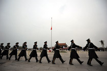 天安门广场下半旗志哀