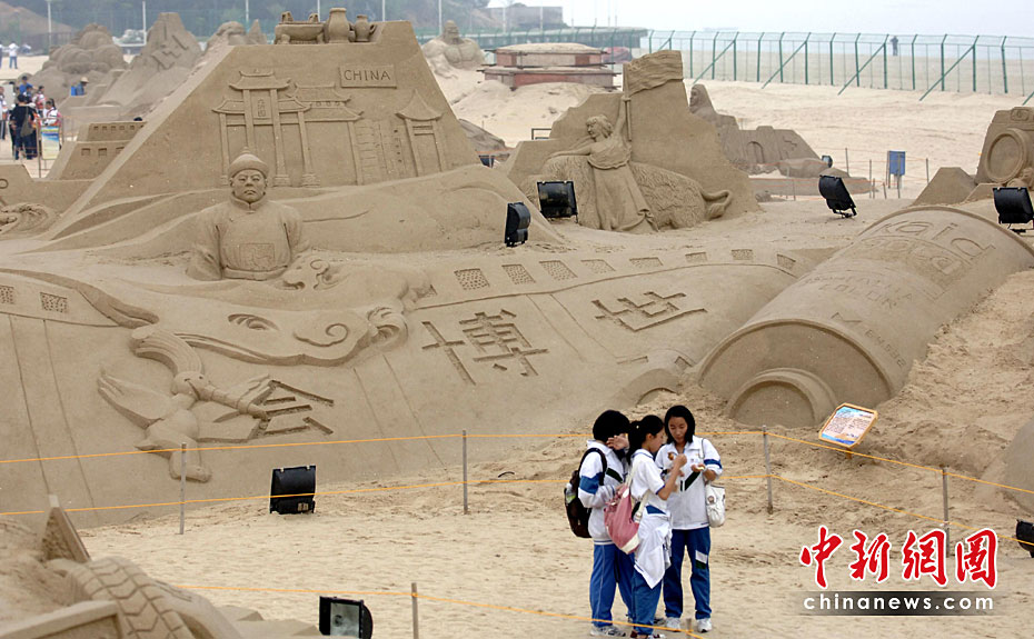 第三届厦门观音山沙雕文化公园于4月22日在厦门观音山黄金沙滩投入试运营。本届沙雕文化公园将以“畅游历史”及“世博文化”为主题,共汇集70余座沙雕作品,规模继续在亚洲称雄。本次2010年观音山沙雕文化公园将分为六大区域,分别是历史主题区、世博专区、海洋文化区、竞赛区、DIY体验区和休闲配套区。尤以世博专区和历史主题区为展示重点。王东明 摄