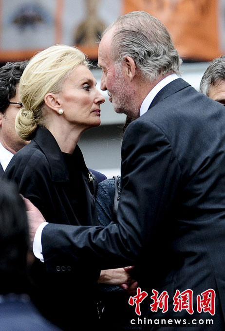图为西班牙国王卡洛斯问候萨马兰奇先生的女儿。