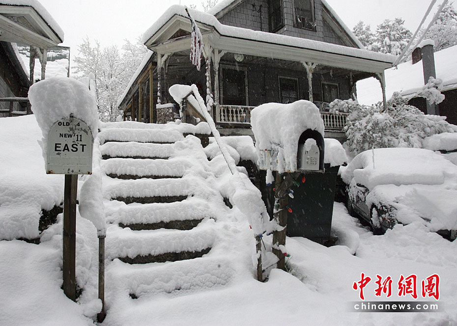 当地时间4月28日,美国佛蒙特州部分地区遭大雪袭击。这场大雪给人们的出行带来不便。图片来源:中国新闻网