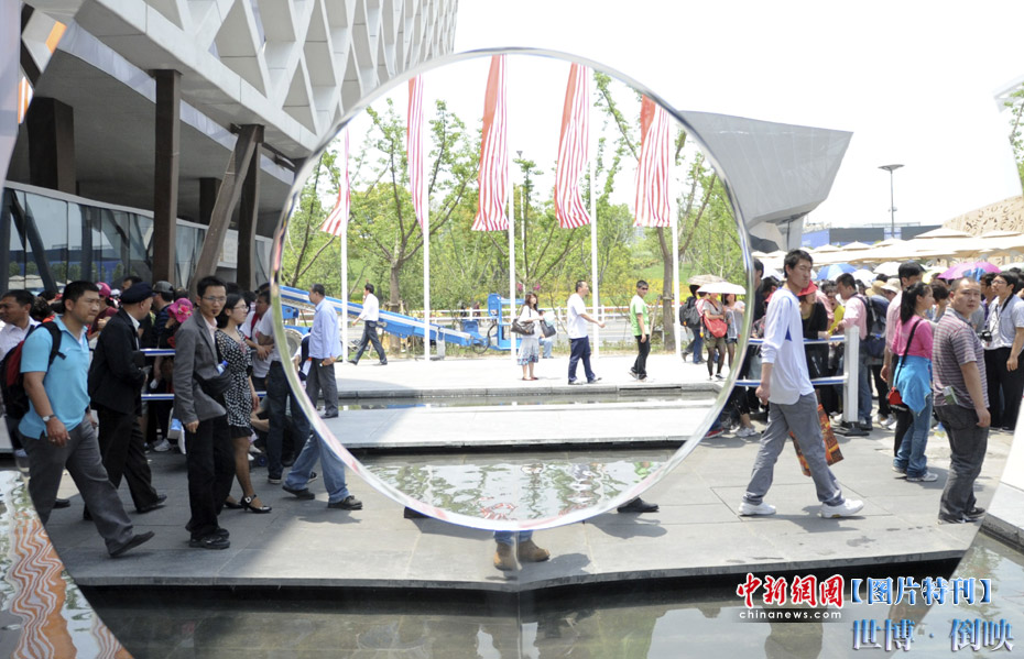 图为法国馆外的一个镜面雕塑。中新社记者 廖攀 摄