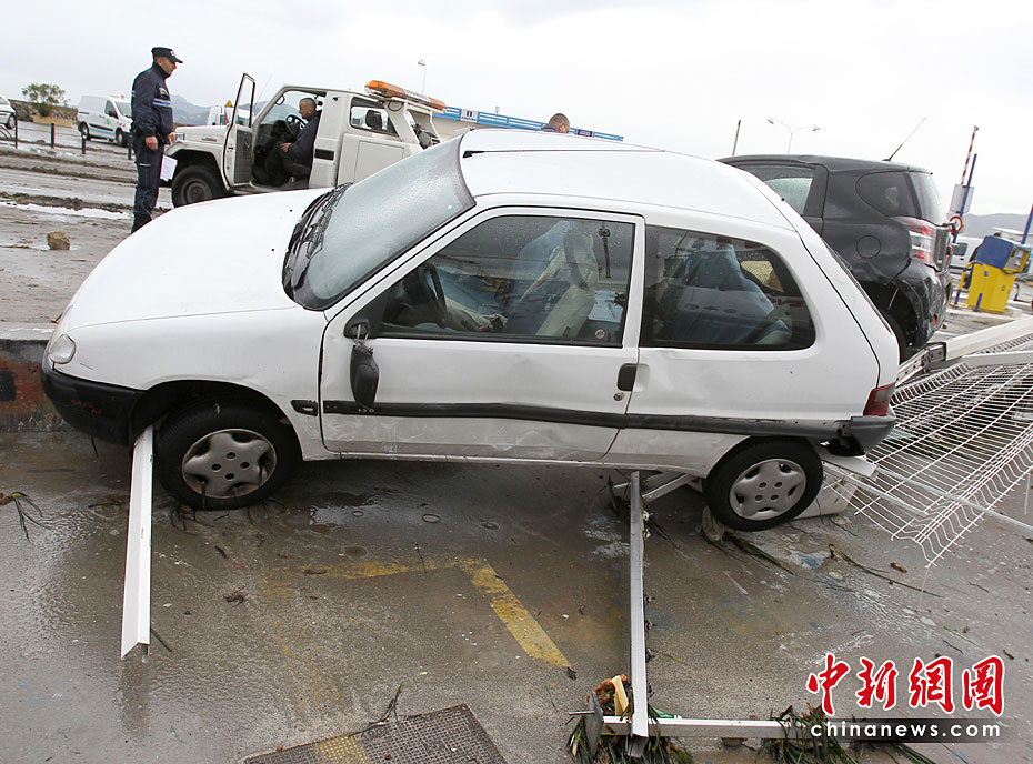近日,在法国南部城市尼斯,巨浪袭击城市的海岸后造成城市道路瘫痪。法国南部部分地区遭遇大风和巨浪,使当地交通和供电受到不同程度的影响。图片来源:中国新闻网