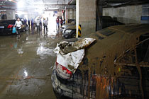地下车库遭大雨水浸 三百余车黄泥加身