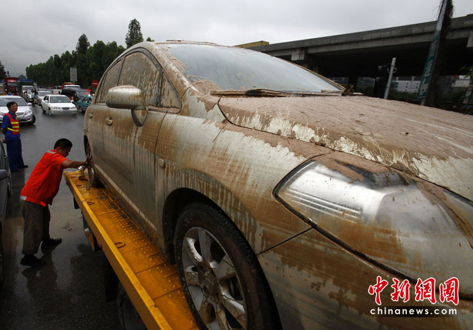 5月10日,广州中海康城地下停车场遭水浸的汽车终于重新出水。受5月7日的大雨影响,广州市东圃地区的中海康城的地下停车库发生严重的水浸。经过4天日夜不断地抽水,5月10号上午,地下车库里面的水终于干了。4天来一直轰鸣的水泵昨日终于停了下来。早晨7时许,众车主陆续来到车库,370多台车横七竖八排开,几只塘虱在淤泥里挪动着。在拖车出库的时候,不少车主泪流满面。