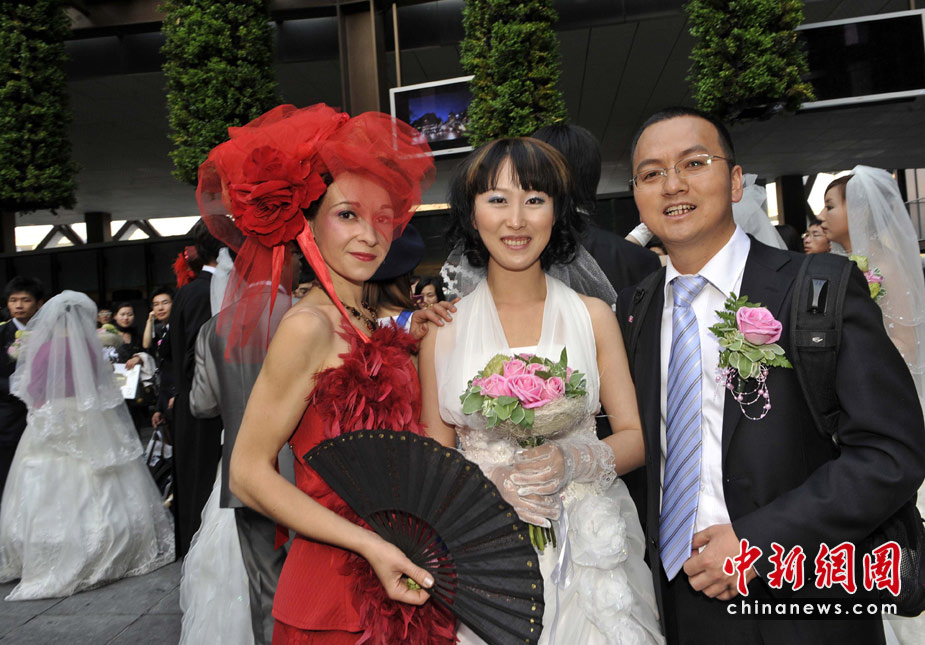 5月11日,35对新人来到世博法国馆内举行婚礼仪式。法国馆举行“法兰西浪漫婚典”的集体婚礼。中新社发 吴元峰 摄