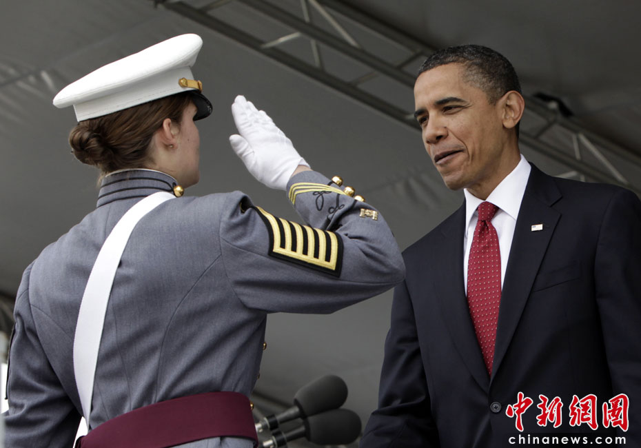 5月22日,美国纽约州北部哈德逊河西岸西点镇的西点军校举行2010年度毕业典礼,美国总统奥巴马出席典礼。本届共有1002名学员获得理学学士学位,并被授予陆军少尉军衔。图片来源:中国新闻网