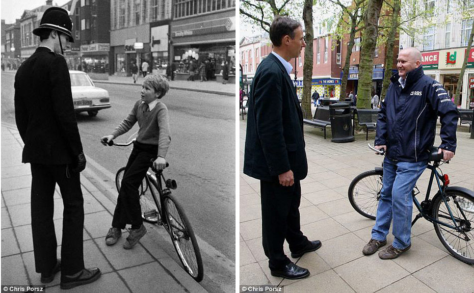 照片上的两位主人公都无法记起当时究竟在聊些什么,大概是调皮又爱炫耀的小男孩把车骑上了机动车道被警察叔叔批评吧。现在小男孩长大了,当年的警界新人也成了退休的老警官。