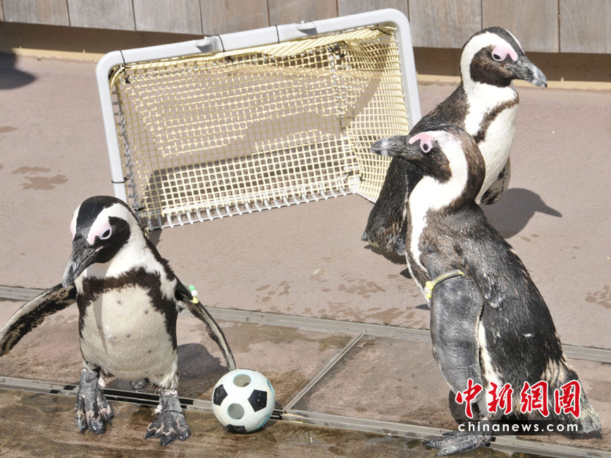 6月1日,在日本东京一家海洋馆里,几只企鹅“披挂上阵”,进行了一场别开生面的足球赛,迎接世界杯。