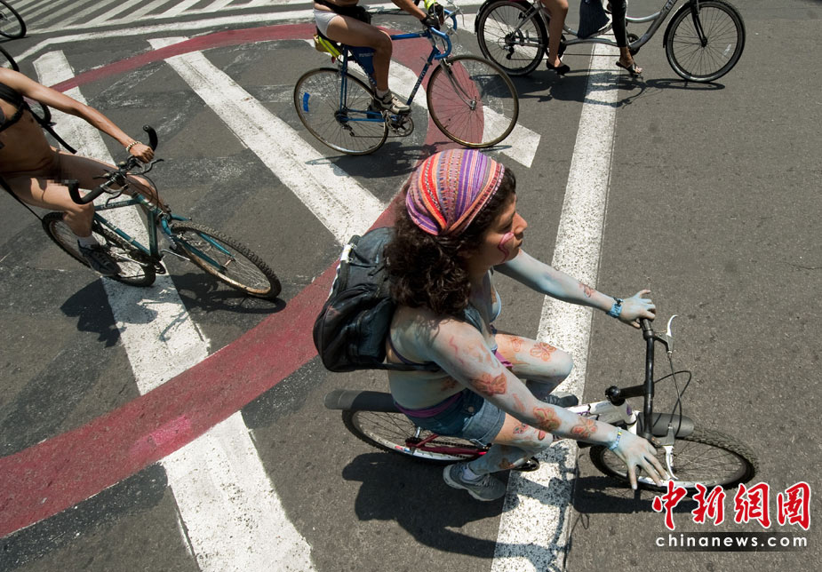 6月12日,在英国伦敦、墨西哥首都墨西哥城等地举行了一年一度传统的“裸体骑自行车大赛”。