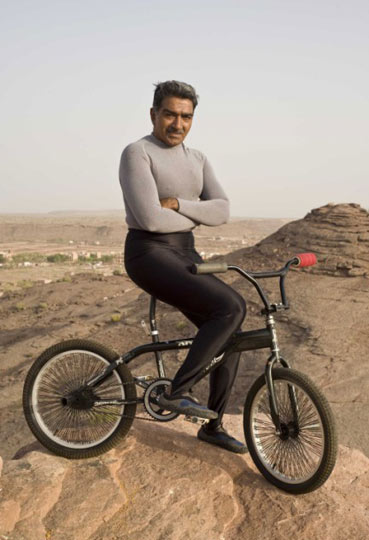 据英国媒体25日报道,印度有一位61岁的奇人名叫Khiv Raj Gurjar,曾在1972年获得了印度自行车赛冠军。从2006年起,他开始在他的自行车上练习瑜伽。如今他可以在自行车上表演很多瑜伽姿势,甚至可以在悬崖边上利用自行车做很多高难度的平衡动作。