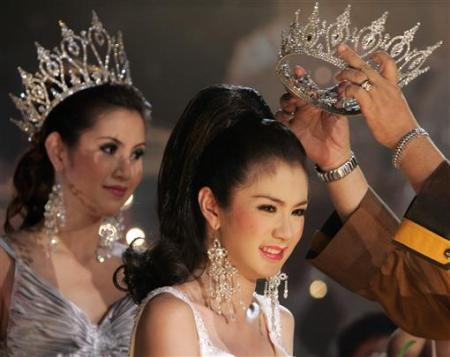 泰国佳丽Thanyarat Jirapatpakorn(中)赢得2007年度蒂凡尼国际变性小姐大赛冠军。