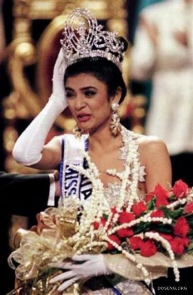 印尼小姐Sushmita Sen在戴上1994年环球小姐后冠时激动落泪。