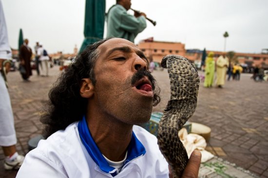 摩洛哥街头迷恋玩蛇的魔术大师
