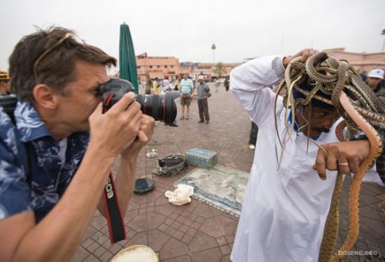 摩洛哥街头迷恋玩蛇的魔术大师