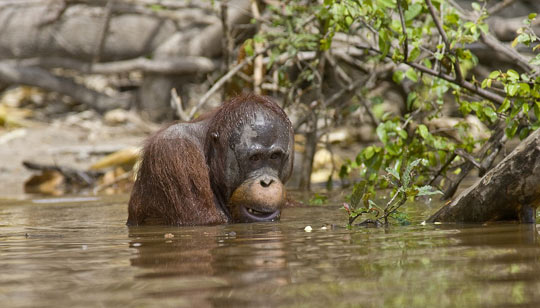 趣图:罕见的大猩猩游泳觅食照片(2)