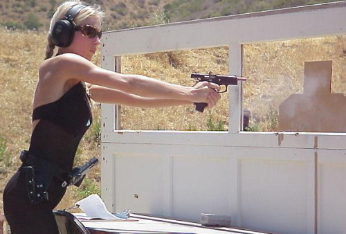 组图:金发靓女靶场大玩实弹射击(5)