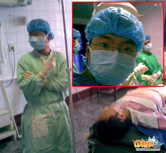6月9日,中新网社区有网友发布一篇标题为:“彻底无语,医生动手术时竟然还在玩手机自拍”的帖子。该贴一出立刻引来大批网友在网上留言谩骂,甚至还有网友建议对其进行“人肉搜索”。不过也有网友表示可以理解,并表示手术室不是战场,没有那么严肃,医生也应当享有拍照的权利。(图片来源:中新网社区)